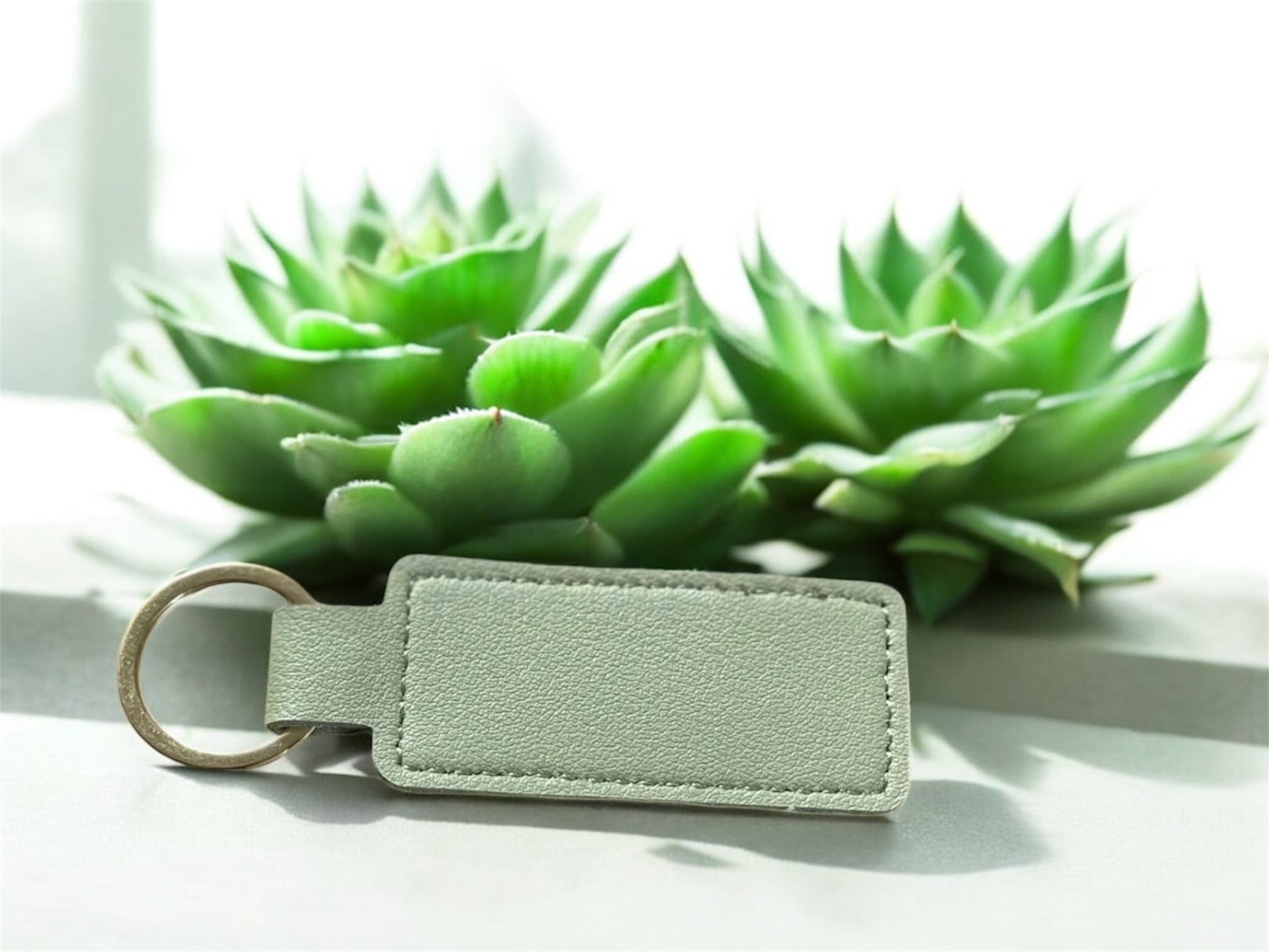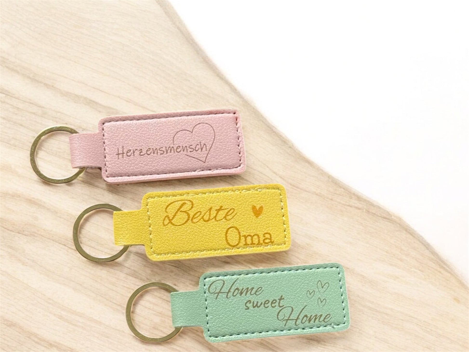 Eleganter PU-Leder Schlüsselanhänger, individuell gravierbar mit deinem Wunschtext – perfekt als persönliches Geschenk oder für den eigenen Schlüsselbund. Größe: 2,8x6cm